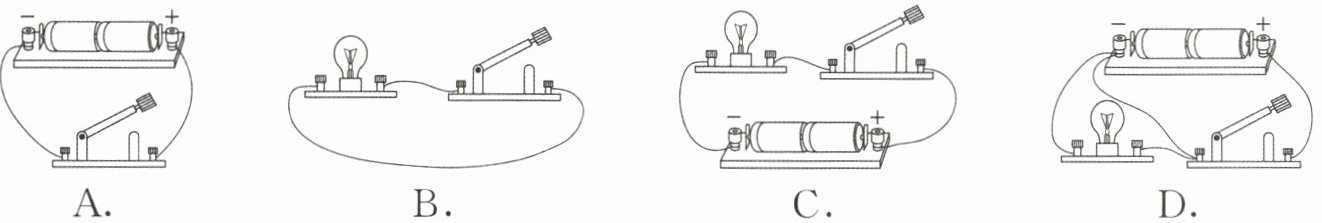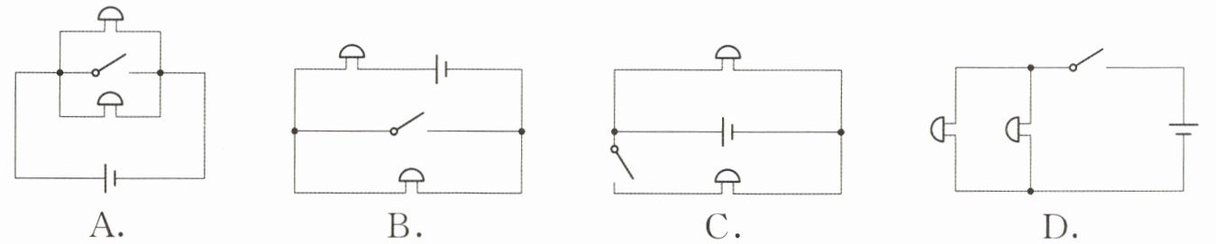 4 下列电路中,开关能够控制整个电路,且开关闭合后两个电铃都能工作的是(
