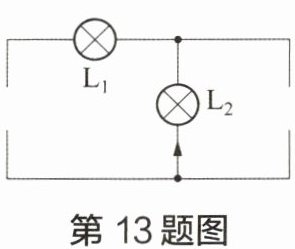 13 根据图中标明的电流方向,分别将电源和开关的符号填入电路的空缺处,要求闭合开关后没有元件被短路。