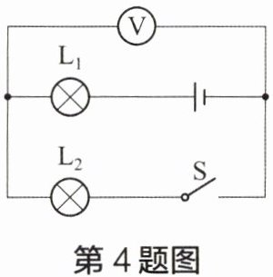 4. 如图所示电路,闭合开关 S,电压表测量的是(