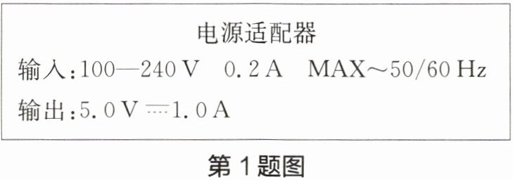 1. 如图所示为某电源适配器的铭牌,用它向手机充电时,其输出端电压约为(