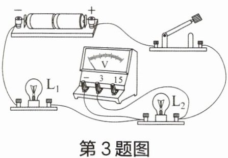 3. 如图所示电路,闭合开关,电压表测量的是(