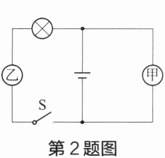 2. 如图所示,当开关 S 闭合时,灯泡能正常发光,各电表都能正常工作。已知甲、乙是电流表或电压表。下列说法中正确的是(