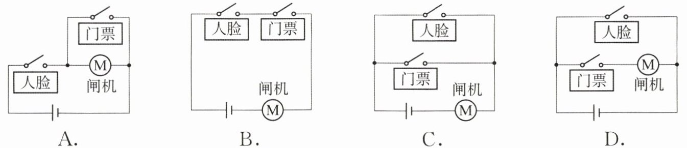4. 某景区使用了电子客票自助检票机,检票机系统会自动扫描人脸、进行人脸识别,同时还会对乘客所持的门票二维码进行扫描,只有“人码合一”才能通过闸机进入。下列电路中,符合要求的是(