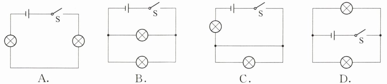 2. 下列电路中,闭合开关S,两灯泡串联连接的是(