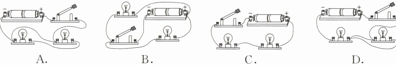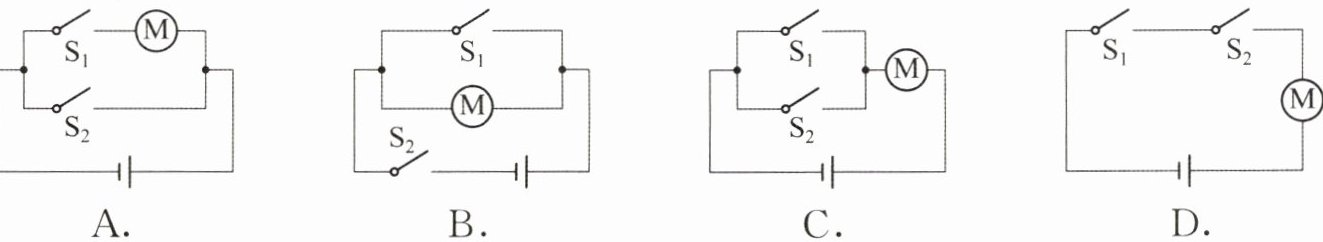 5. 某款电动自行车设计有双钥匙电动安全锁,这里的钥匙相当于“开关”,只有两把钥匙同时使用(开关闭合)才能开锁。下列电路图中,符合要求的是(