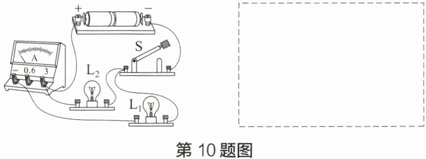 10. 请根据如图所示的实物连接图,在虚线框内画出相应的电路图。