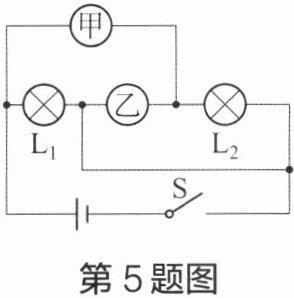 5. 在如图所示的电路中,甲、乙是电压表或电流表,开关S闭合后,小灯泡$L_{1}$、$L_{2}$均正常发光。则下列说法中正确的是(