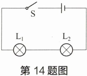 14. 在如图所示的电路中,电源电压保持不变。开关S闭合后,发现两灯都不发光。若电路中只有一处故障,且只发生在灯$L_{1}或L_{2}$上,在不拆除原有电路的情况下,将一个完好的小灯L并联在某一元件两端,找出故障。请写出具体操作、实验现象及其对应的故障。(给出一种方案即可)