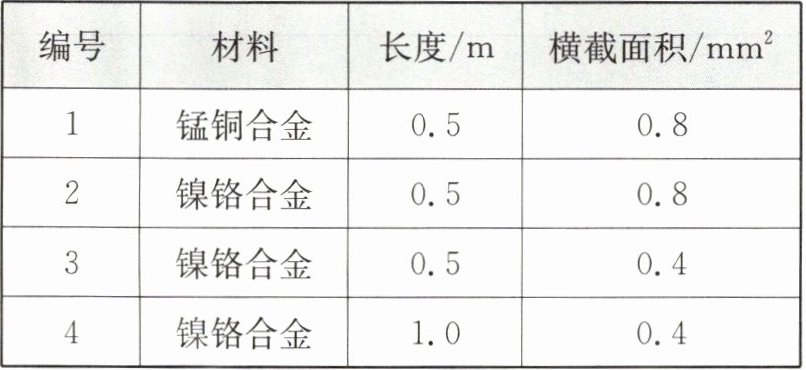 (3)不可行,导体的材料也会影响电阻的大小,编号为1和3的金属丝的材料不同。