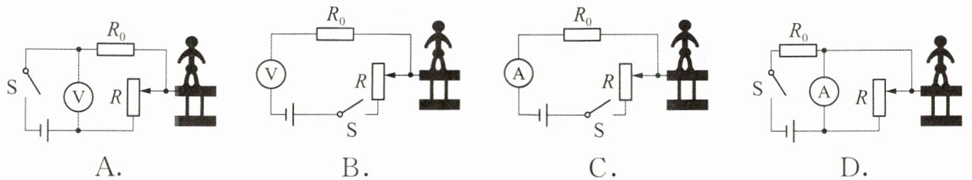 6 小明根据所学的电路知识设计了以下四个体重计原理图,其中可行的是(