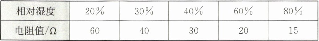 (1)由表格中的数据可知:相对湿度越大,温敏电阻的阻值