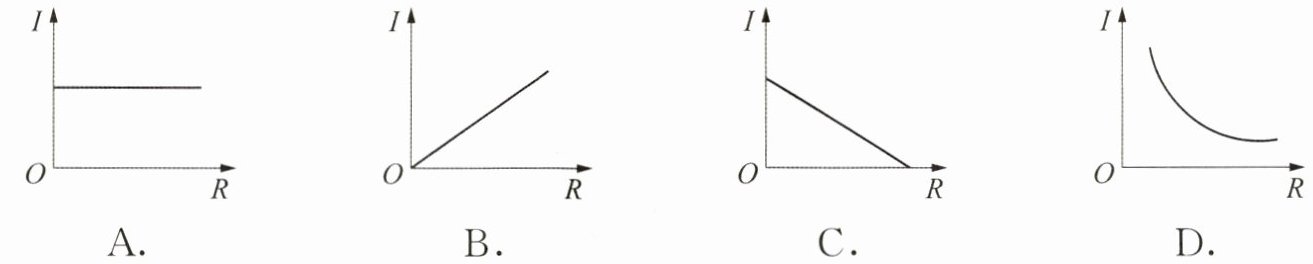 3. 在“探究电流与电阻的关系”实验中,四位同学分别得到下列 $ I - R $ 图像,其中正确的是(