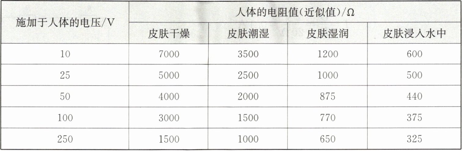 12 下表记录了人体在不同潮湿程度下的电阻值,请根据表中的相关数据回答问题。