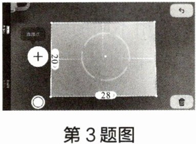 3 利用软件可以让手机变成测量工具。如图所示,利用某手机软件测量一张纸的长和宽,分别显示为“28”“20”。此时所选择的长度单位是(