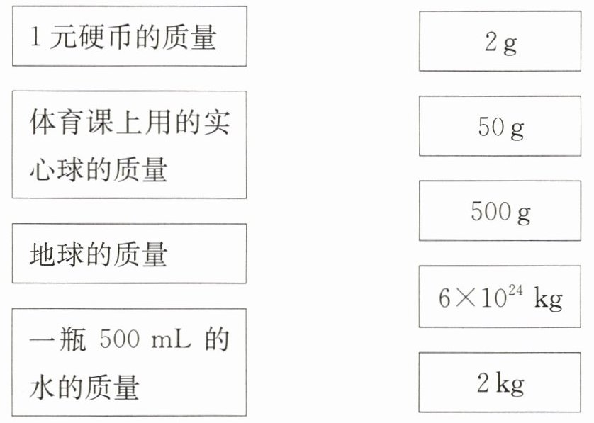 9 请用连线的方式将左侧的质量与右侧较为接近的数据连接起来。