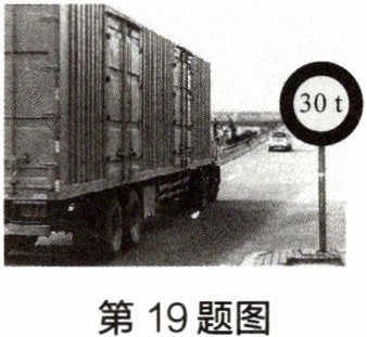 19 如图所示为某大桥的限重标志,表示对过桥车辆的质量限制。若有一辆集装箱卡车的总重力为 $ 2.45 × 10^{5} \, N $,则该卡车能通过该桥吗? (请用两种方法计算说明)