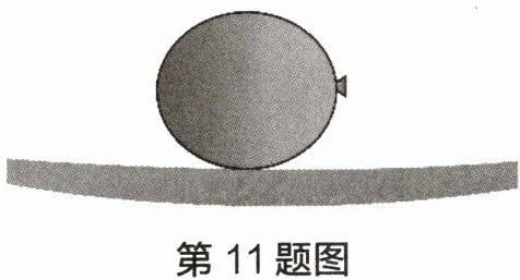 11. 如图所示,一个用薄膜制成的水球放在一块长塑料板上,塑料板向下弯,水球对塑料板施加了向下的压力,该力的产生是因为
