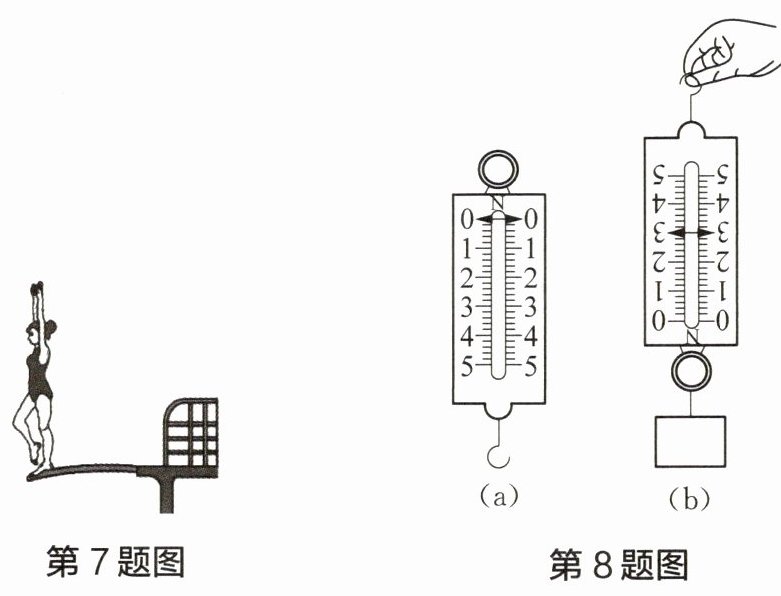 8. 某同学在用图(a)所示的测力计测量一物体的重力时,错将物体挂在了拉环上,如图(b)所示,当物体静止时,测力计的读数为 3.0N,则物体的重力(