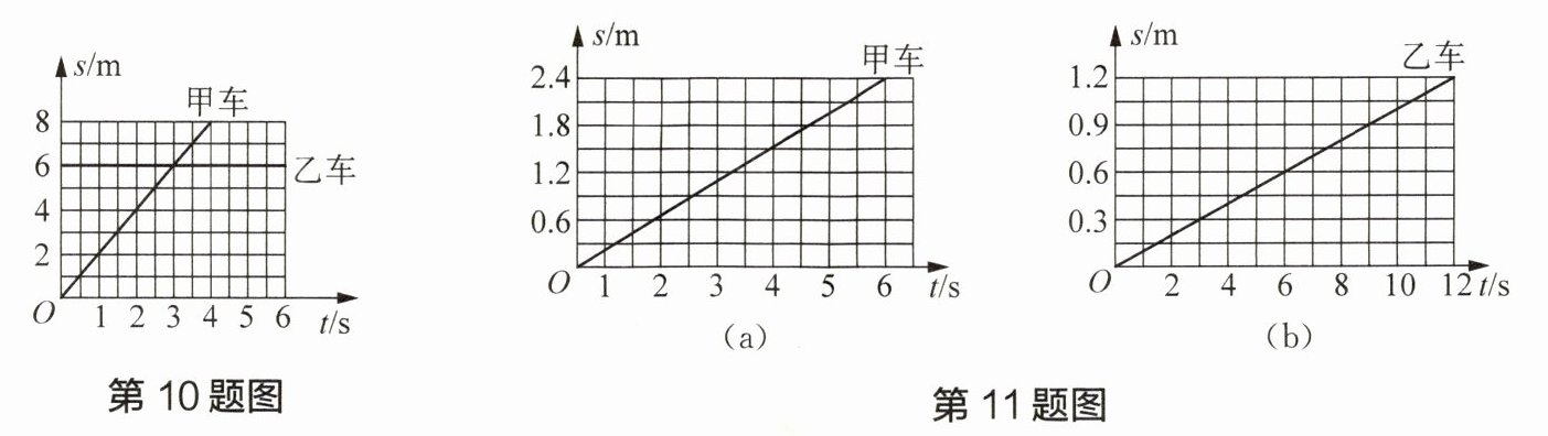 11. 甲、乙两小车同时同地做匀速直线运动,它们的 $ s - t $ 图象分别如图(a)、(b)所示。请根据图象判断,下列说法中正确的是(