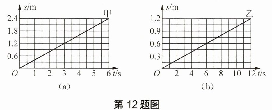 12. $ P、Q $ 是同一直线上相距 1.2 m 的两点,甲物体从 $ P $ 点、乙物体从 $ Q $ 点同时沿直线相向而行,它们运动的 $ s - t $ 图象分别如图(a)、(b)所示。分析图象可知(