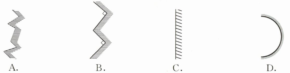 6 交警所穿反光背心中反光部分由一种特殊材料制成,它能将远处射来的光线平行地反射回去,从而使夜间执勤的交警比较容易被驾驶员看到。若把反光部分放大,则其结构可能是(