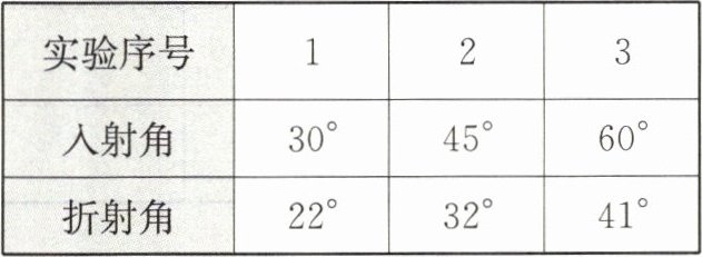 |折射角|$22^{\circ}$|$32^{\circ}$|$41^{\circ}$|
