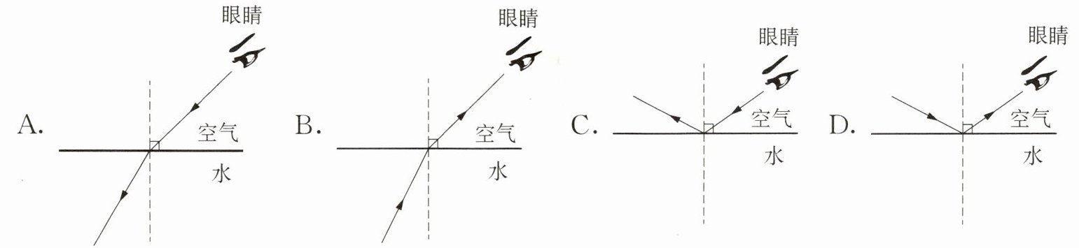 8. 如图所示,将一辆玩具车的车轮放入水中,看起来浸入水中的车轮变“扁”了,下列光路图中能正确反映其成因的是(
