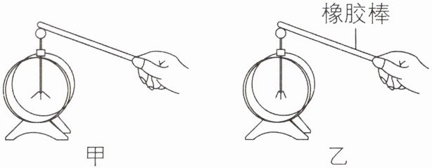 电荷。如图甲所示,验电器带电使金属箔张开;如图乙所示,若用与毛皮摩擦过的橡胶棒接触该验电器的金属球,金属箔张开角度变小,则图甲中验电器带正