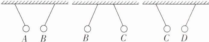 3 判断电性[2024河南周口质检,中](多选)如图所示,这是四个用细线悬挂的泡沫塑料小球之间相互作用的情形。已知D球带负电,则另外三个小球带电情况正确的是 ( )