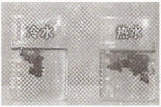(1)同时向两烧杯中各滴入一滴大小相等的红墨水,看到的现象是热水比冷水变红得快。