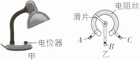 4 [2024 四川成都调研,中]如图,甲为某可调亮度的台灯,乙为该台灯用到的电位器的结构图,A、B、C 为电位器的三个接线柱,转动滑片可调节灯泡亮度。下列分析正确的是(