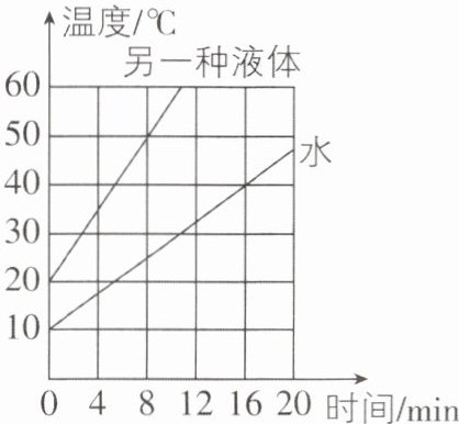 4 [2025天津南开区质检,中]小丽用相同的电加热器分别对质量为0.2kg的水和质量为0.3kg的另一种液体进行加热,根据实验数据绘制的图像如图所示,则另一种液体的比热容为____