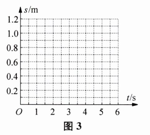 (由于无法直接画图,此处省略画图步骤,实际作答需在图3坐标系中描点连线:小车A依次连接(1.5,0.1)、(3.0,0.2)、(4.5,0.3)、(6.0,0.4);小车B依次连接(1.0,0.2)、(2.0,0.4)、(3.0,0.8)、(4.0,1.2))