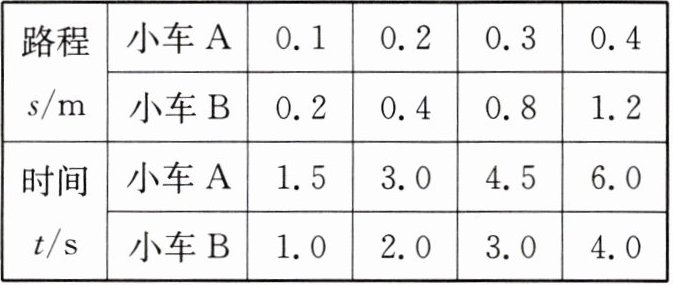 |路程s/m|小车A|0.1|0.2|0.3|0.4|