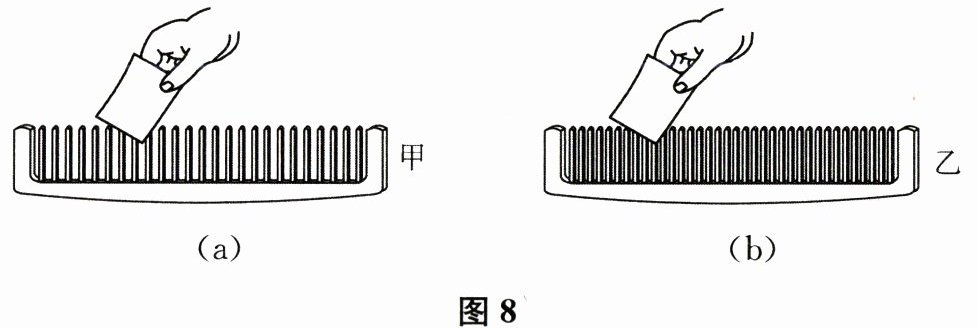 步骤二:如图8(a)、(b)所示,以相同速度用硬纸片分别在甲、乙梳齿上各划一次.