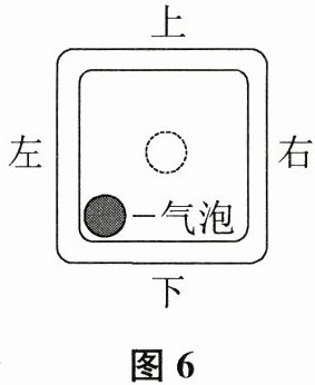桌面上,并观察水平仪中的气泡是否处在中心位置。若气泡的位置如图6所示,说明天平的秤盘 (7))没有