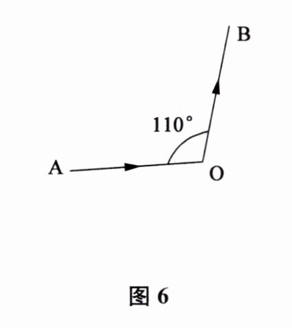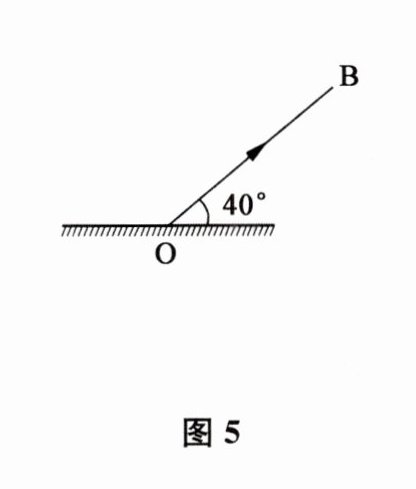 8. 根据图5中已给的反射光线$OB$,画出入射光线$AO$,并标出入射角及其大小.