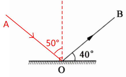 1. 光束与液面夹角为$40^{\circ}$,则入射角为$90^{\circ}-40^{\circ}=50^{\circ}$,根据光的反射定律,反射角等于入射角,故反射角大小为$50^{\circ}$。