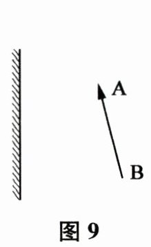 21. 请根据平面镜成像特点在图 9 中画出物体 AB 在平面镜中的像 A'B'。