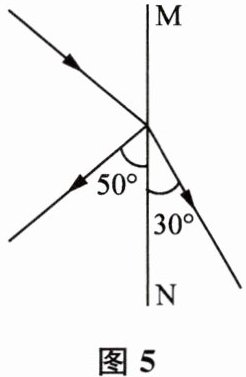 3. 如图5所示,光线从一种介质斜射入另一种介质,MN是两种介质的分界面,其中一种介质是空气,则入射角为