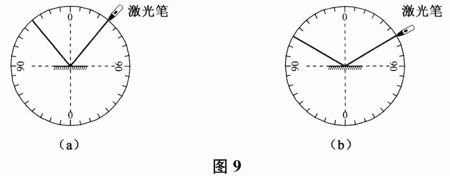 23. 如图 9 所示是小玲用光具盘研究光的反射时所做的两次实验,请将两次的实验数据记录在下表中。