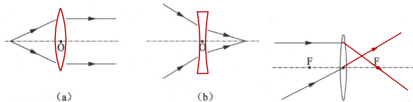 对于凹透镜,从入射光线的起点出发,先画一条平行于主光轴的直线,经过透镜后,该直线应变得发散,并反向延长至虚焦点。