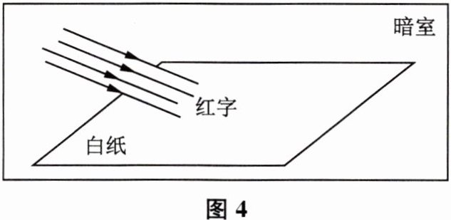3. 用红笔在白纸上写上一个字,拿到漆黑的暗室中,如图4所示.