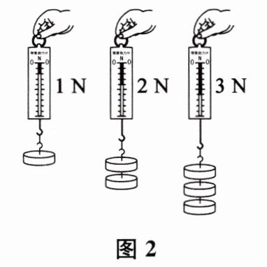 8. 如图2所示,把不同质量的钩码依次挂在弹簧测力计上,分别读出它们的大小.