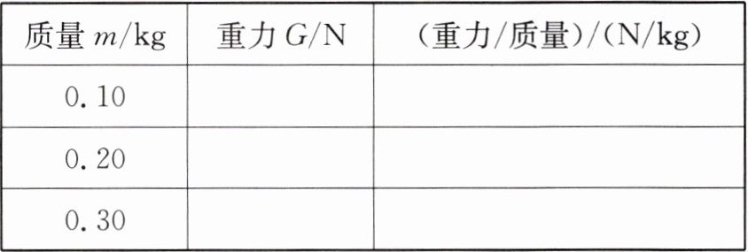 |质量m/kg|重力G/N|(重力/质量)/(N/kg)|