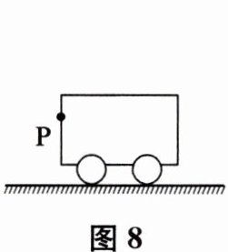 11. 用大小$50N$、方向水平向右的推力$F在P$点处推小车,在图8中用力的图示法画出推力。