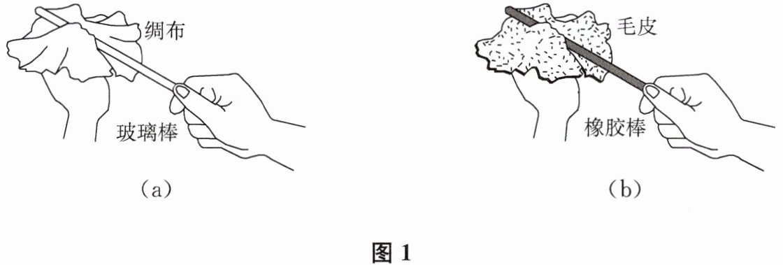 2. 如图1(a)、(b)所示,用干燥的绸布和玻璃棒相互摩擦后,玻璃棒所带的电为