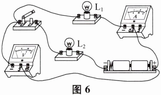 2. 小文同学连接了如图6所示的电路,当开关闭合时,灯$ L_1 $发光,灯$ L_2 $不发光,电流表和电压表的指针均有明显偏转,则故障原因是 (