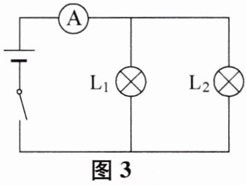 5. 如图3所示的电路中,当开关闭合时,灯$ L_1 $、$ L_2 $都发光. 一段时间后,两灯中有一灯突然熄灭. 以下分析中正确的是 (
