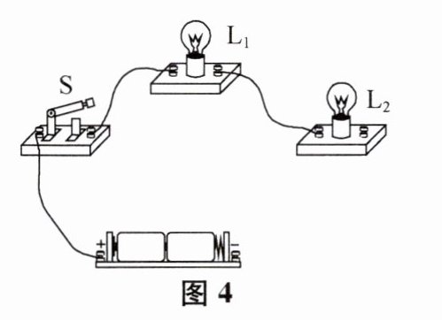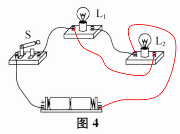 7. 如图4所示电路中,有两根导线尚未连接,请你用笔画线代替导线补上. 补上后要求:并联,S控制整个电路.